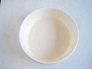 5、把面粉和淀粉混合在一起,慢慢加入清水,攪拌成一碗濃綢的面糊。(面糊要濃綢,這樣后面抹在魚身上才不會(huì)掉,如果稀了,會(huì)上不了漿)